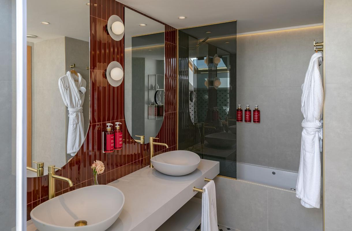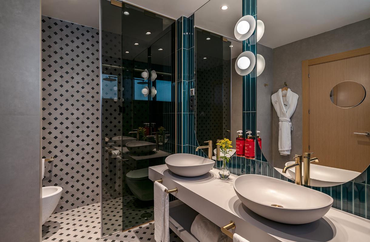 Para quienes buscan un alojamiento verdaderamente excepcional, las Suites Deluxe, estancias únicas que combinan amplitud con diseño de lujo, materiales de primera calidad y detalles pensados para sorprender a los huéspedes más exigentes. Suites en el centro de Málaga llenas de servicios innovadores y espacios únicos, dos dormitorios con cama de matrimonio, dos baños con ducha y bañera, albornoz y zapatillas y un salón con cafetera Nespresso, Kettle para disfrutar de una pausa a cualquier hora.