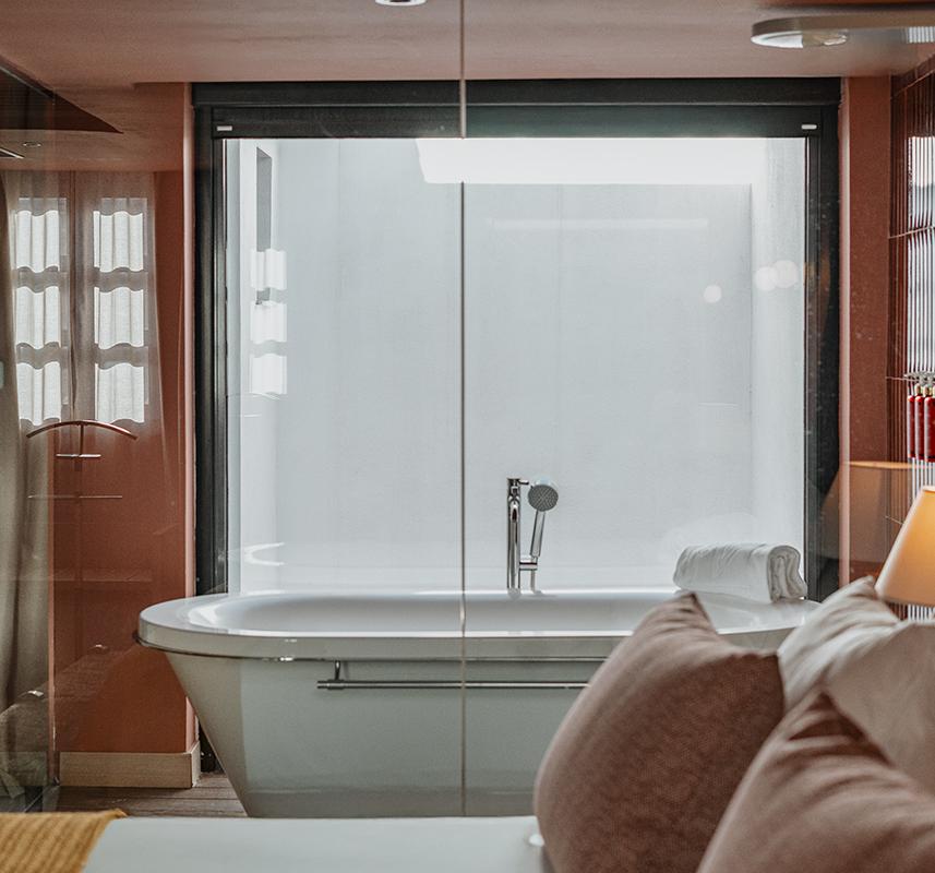 Esta luminosa habitación dispone de un balcón privado desde el que contemplar el centro de la ciudad. Está equipada con cama de matrimonio o dos camas individuales para adaptarnos a sus necesidades, cafetera Nespresso y Kettle para disfrutar de una pausa a cualquier hora. Incluye baño completo con bañera o ducha, además de albornoz y zapatillas que aportan un extra de confort.