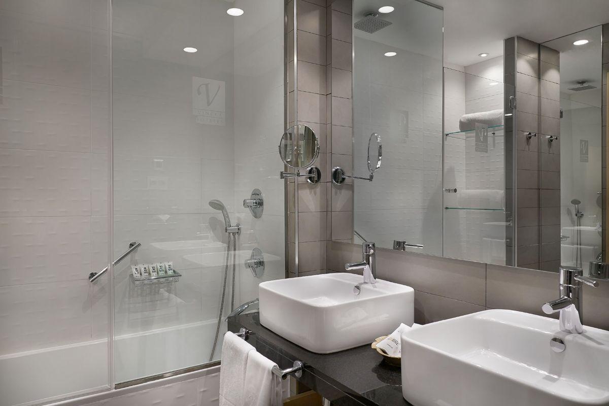 Acogedora habitación, su diseño contemporáneo crea un ambiente tranquilo y confortable, ideal tanto para viajes de negocios como de placer. Equipada con una cama de matrimonio y todos los servicios distintivos de Vincci, incluye un baño completo con bañera, además de albornoz y zapatillas para mayor comodidad.