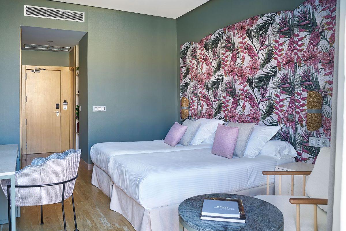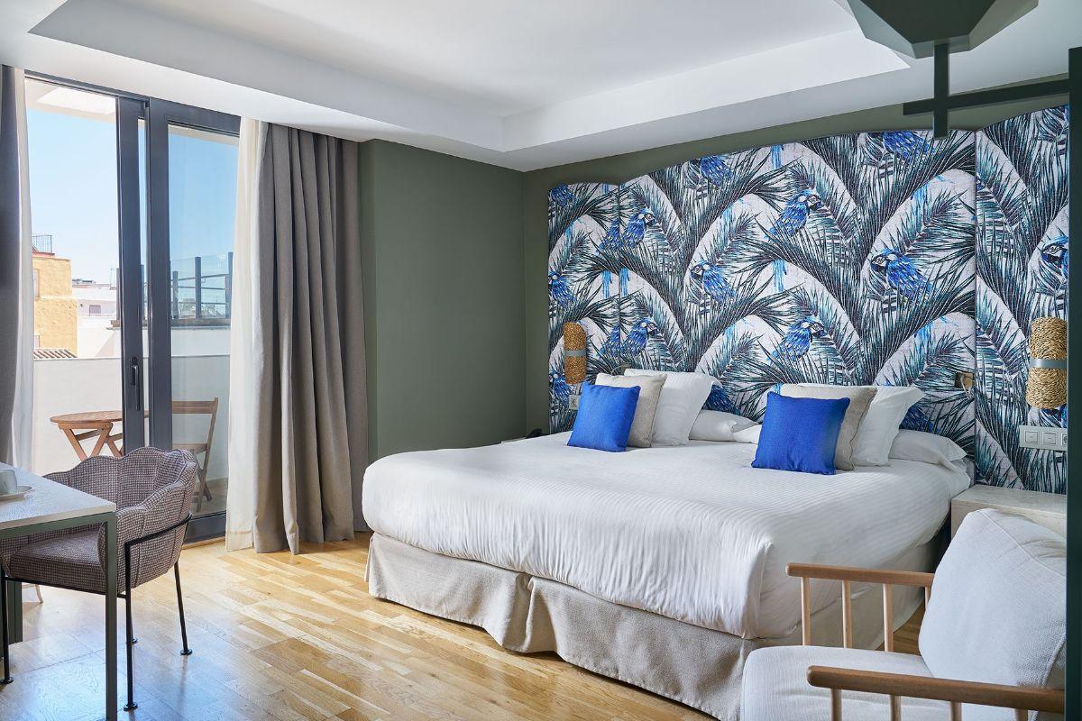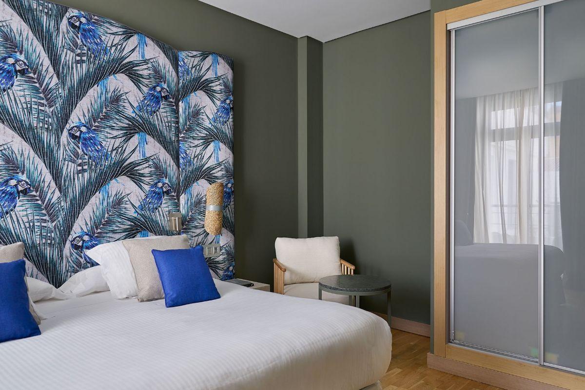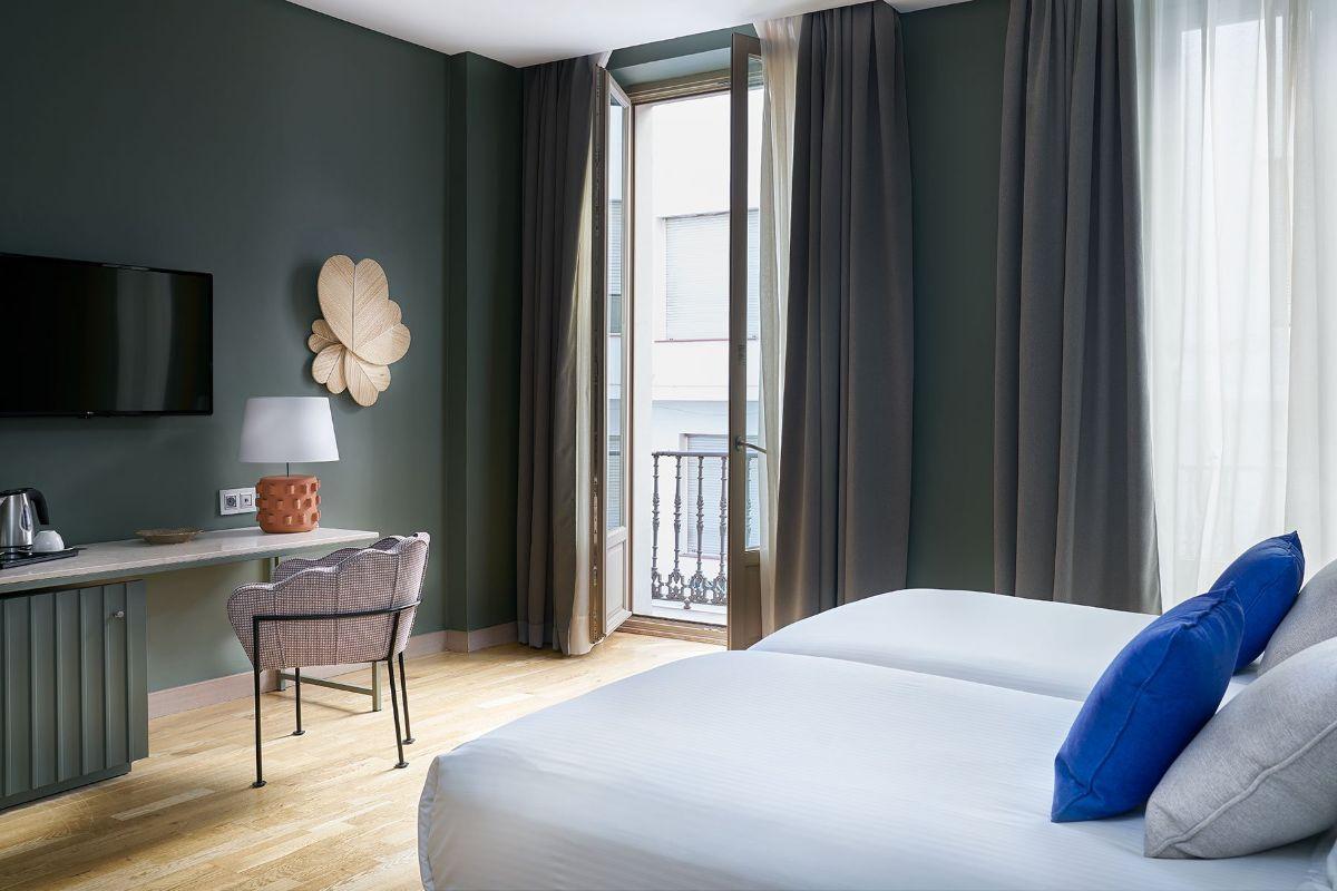 Habitación amplia y luminosa con vistas a la ciudad, su diseño contemporáneo configura un espacio ideal para el descanso en pleno centro de Málaga.