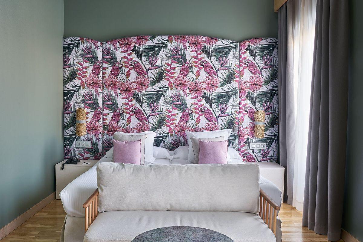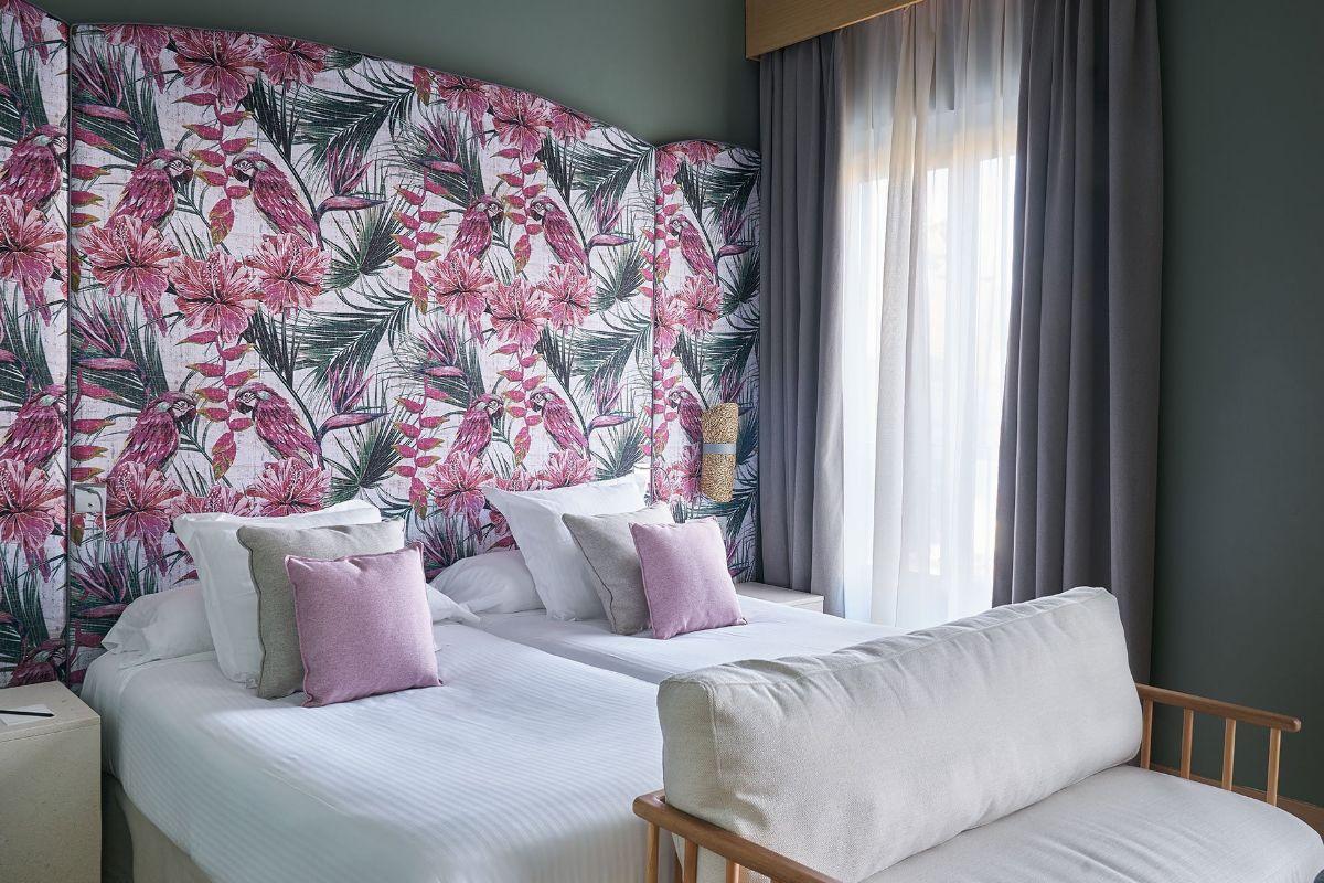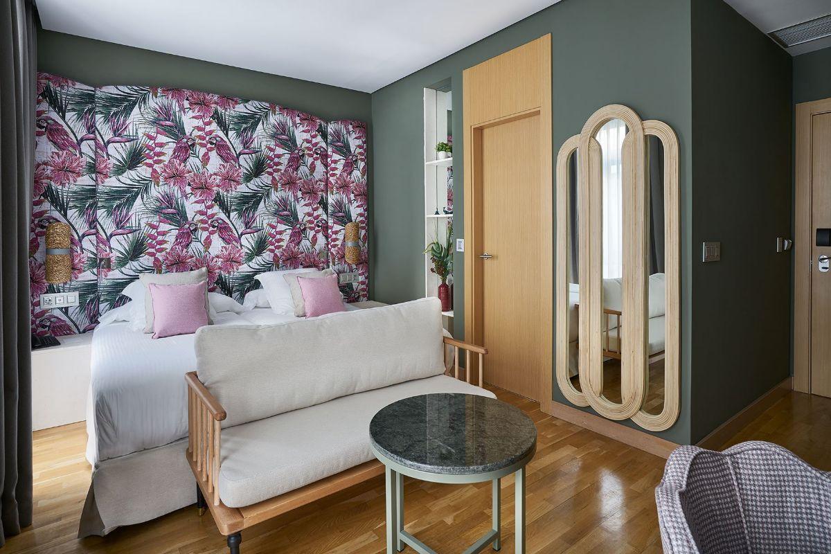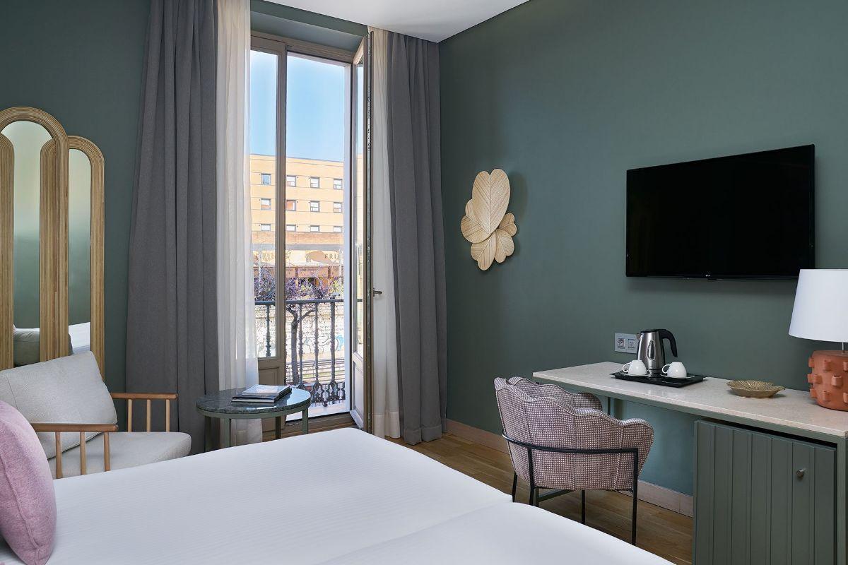 Habitación amplia y luminosa con vistas a la ciudad, su diseño contemporáneo configura un espacio ideal para el descanso en pleno centro de Málaga.